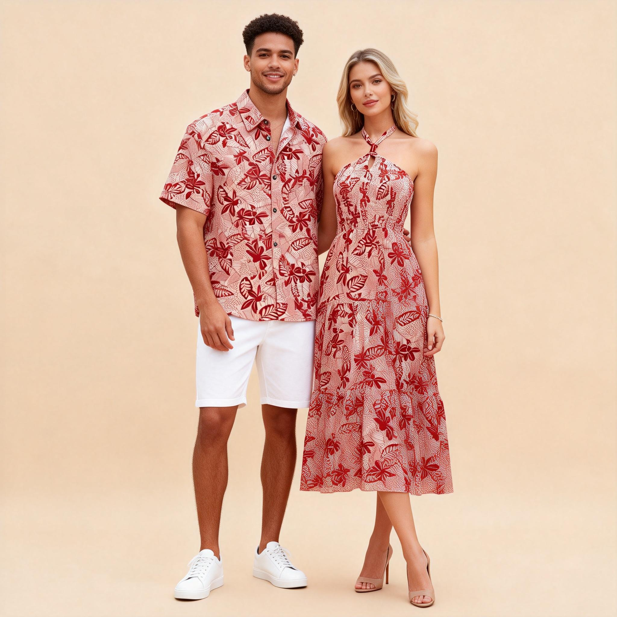 His and Hers Beachwear – Printed Shirt + Boho Printed Maxi Dress