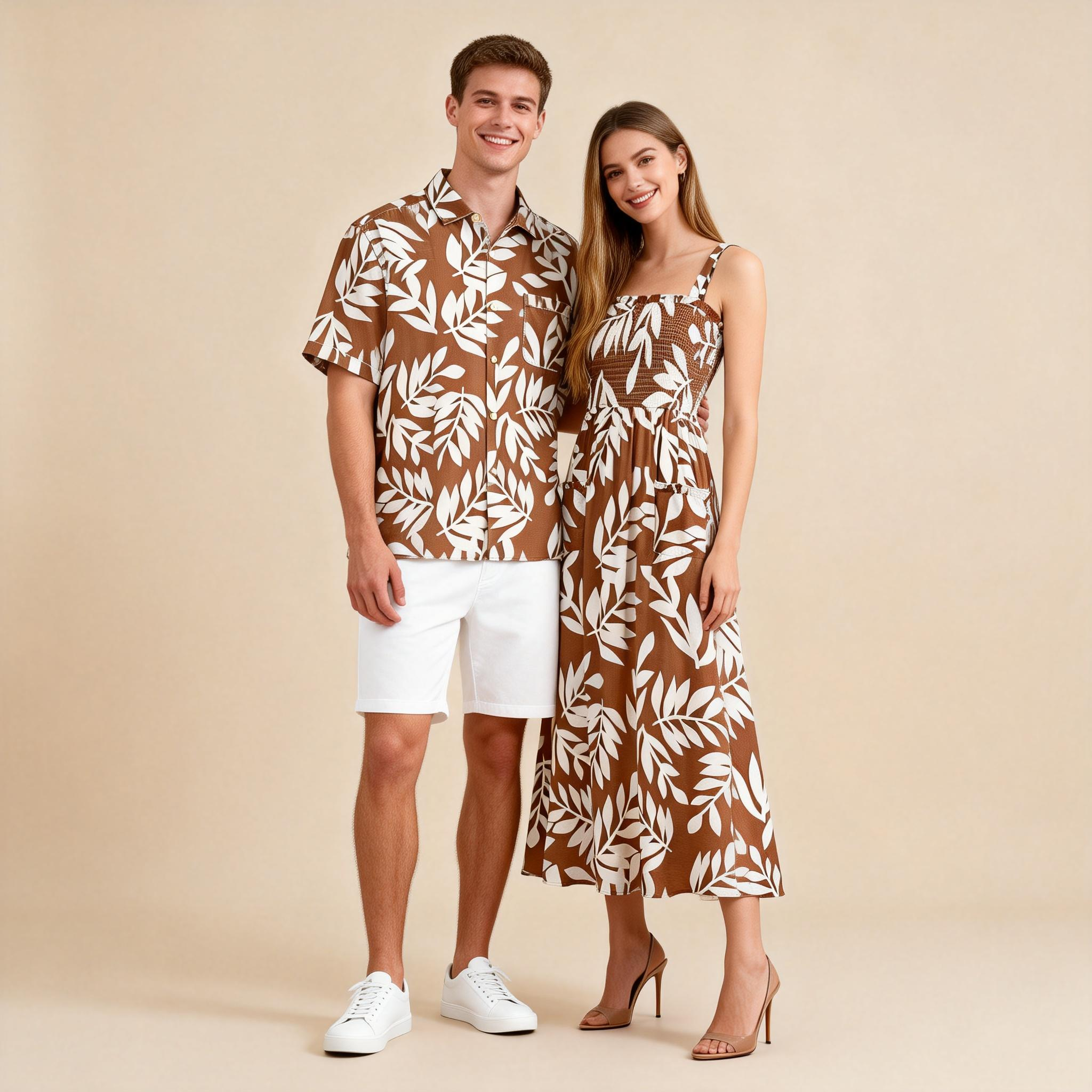 His & Hers Matching Set – Tropical Print Shirt + Beach Maxi Dress