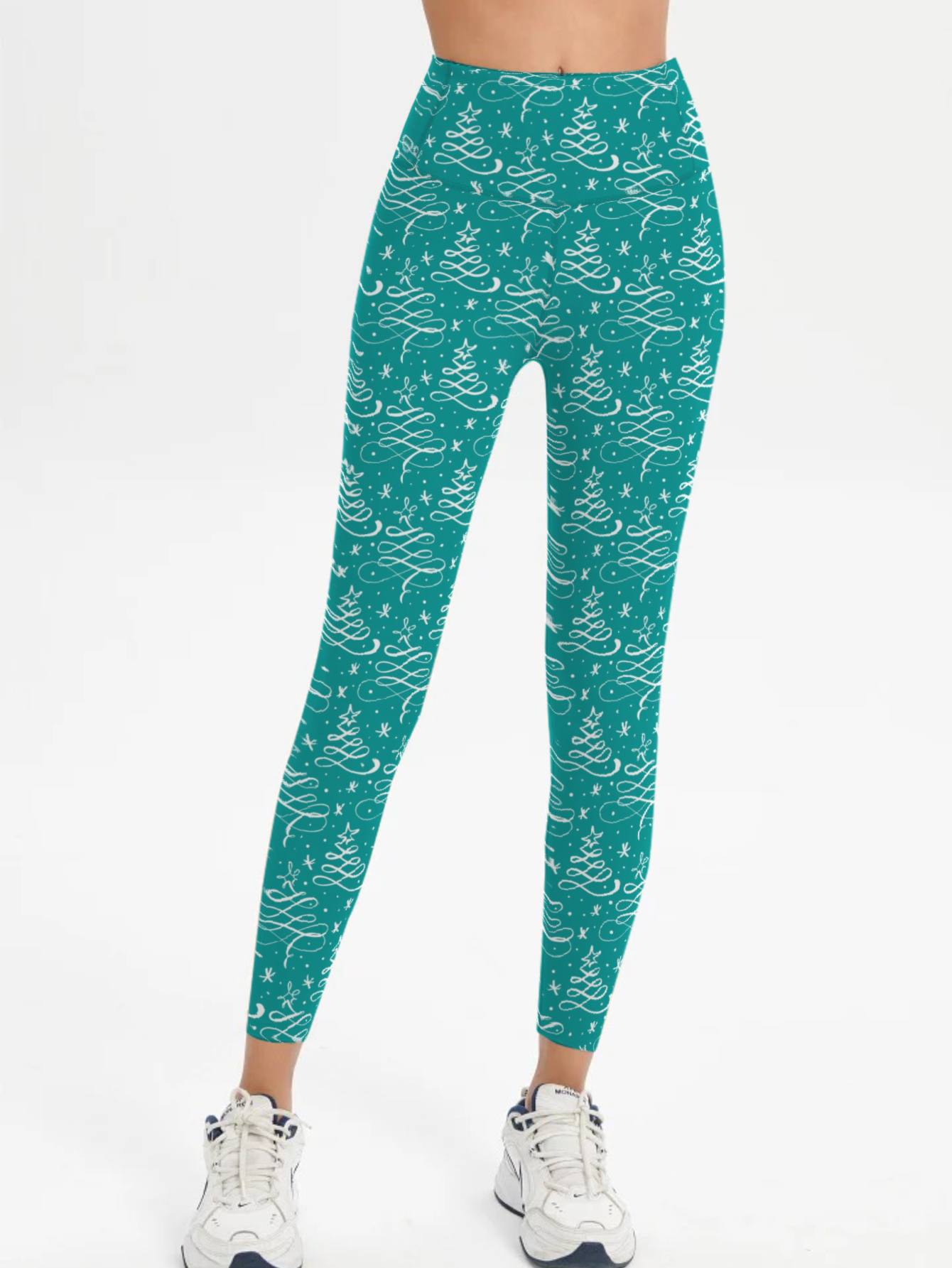 Abstract Holiday Tree Pattern Print Women's Leggings - Cozy & Festive & Fashion