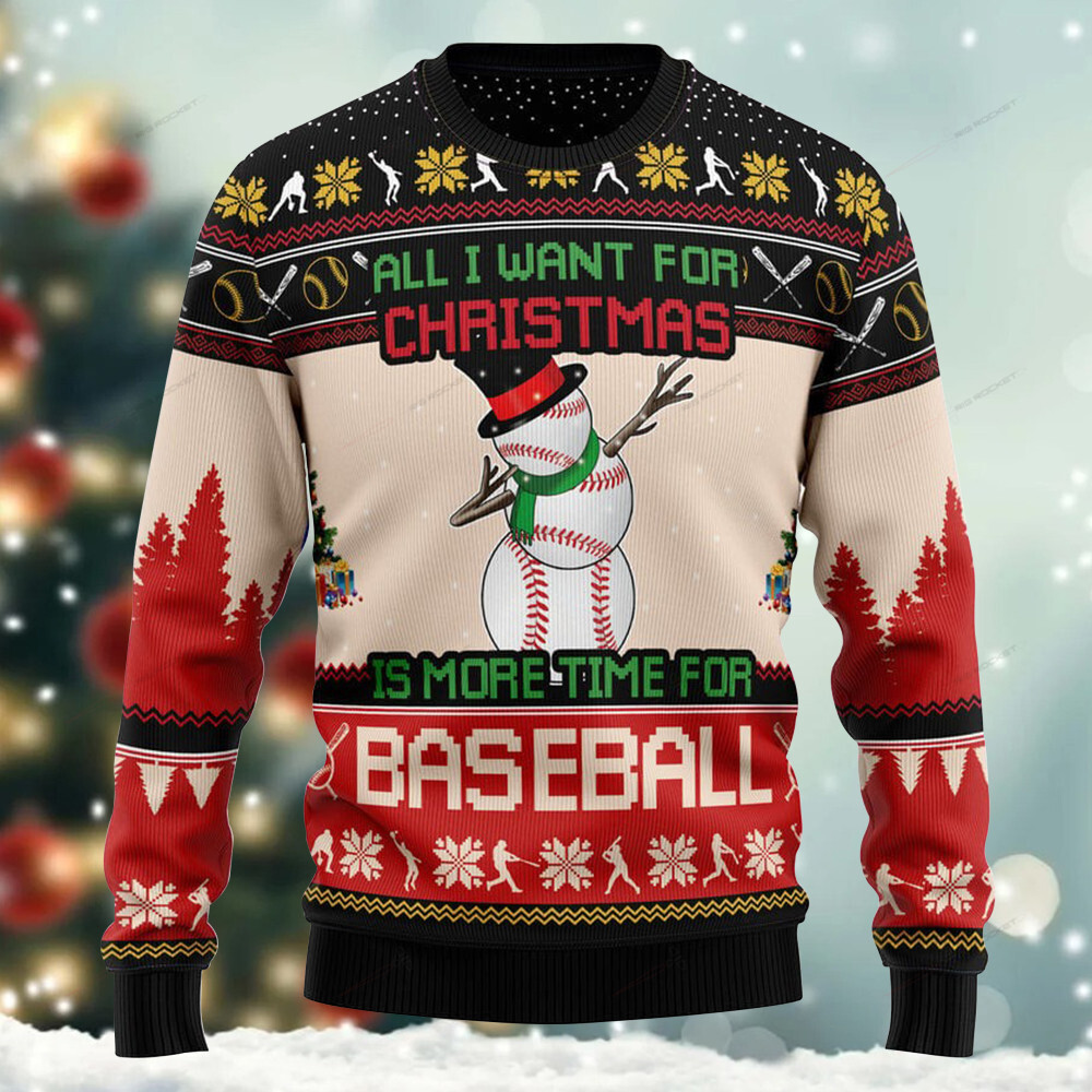 All I Want For Christmas Is More Time For Baseball Ugly Sweater