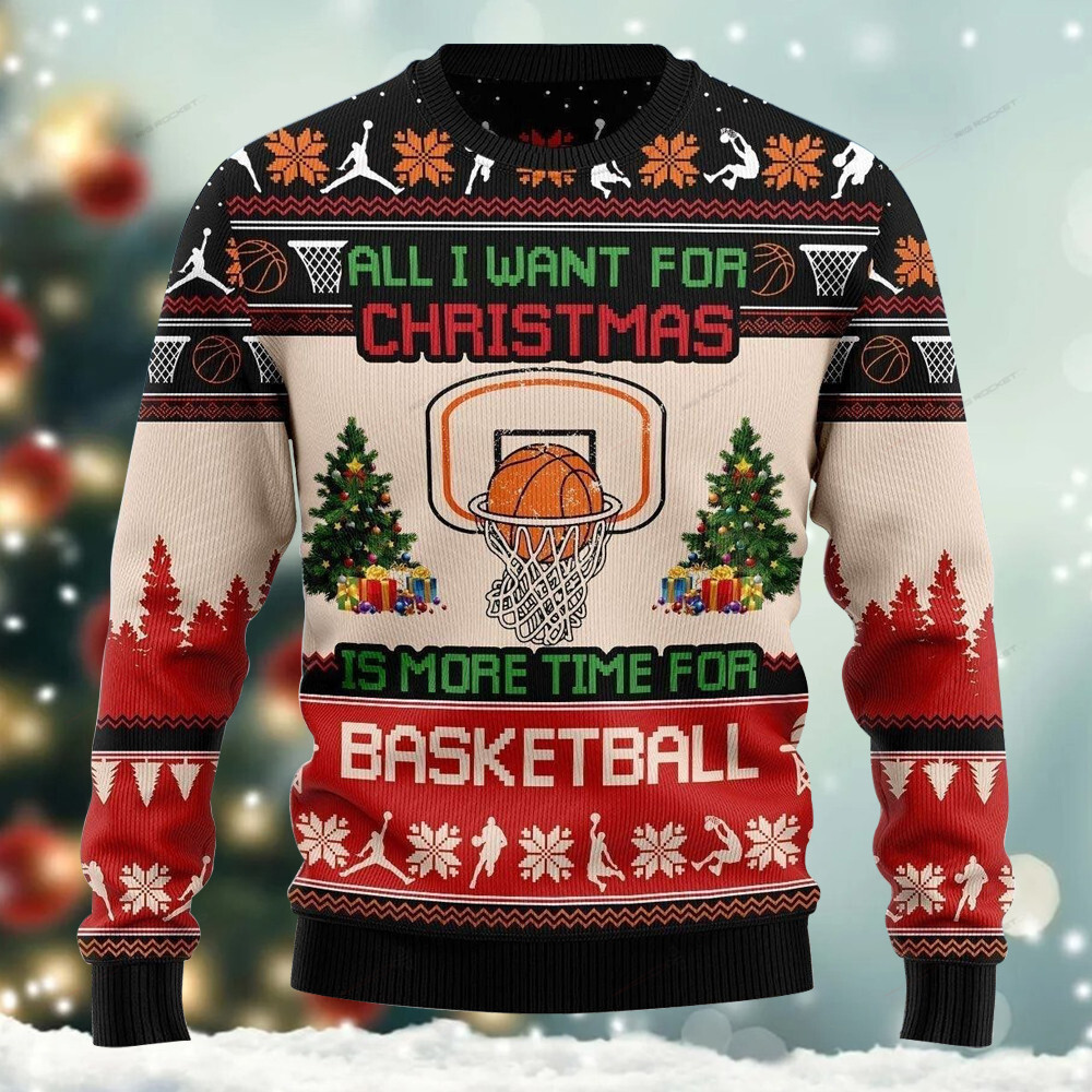 All I Want For Christmas Is More Time For Basketball Ugly Sweater