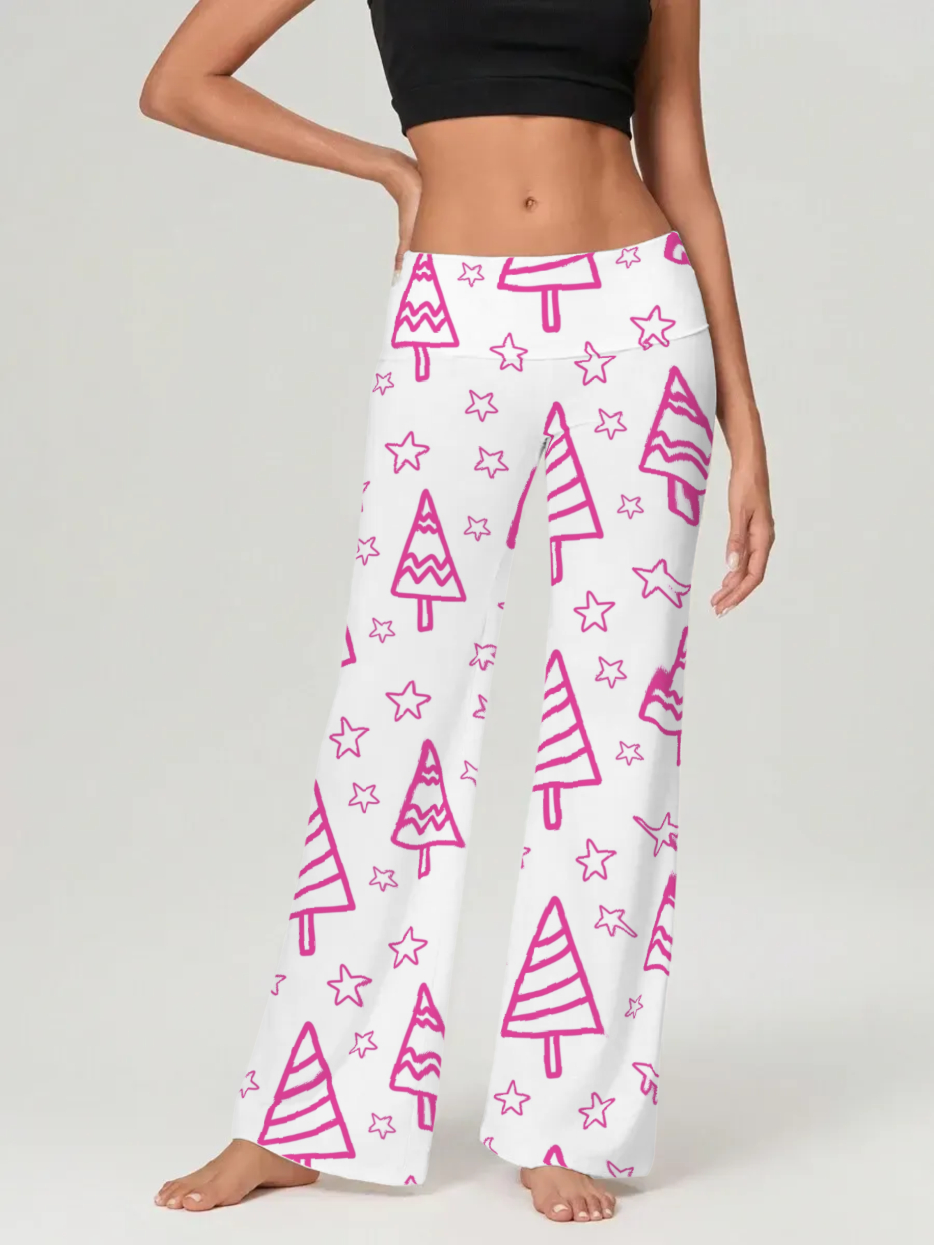 Bright Christmas Tree Print Flare Leggings - Seasonal Yoga Pants