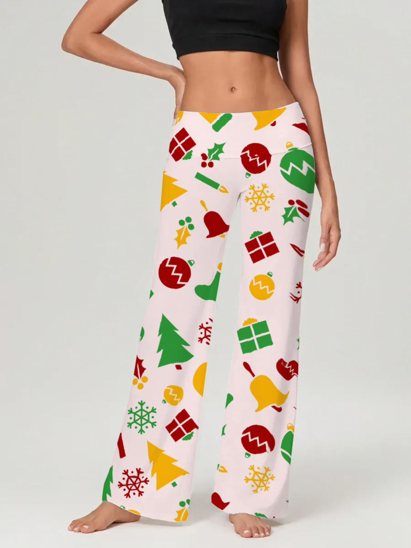 Cheerful Holly Berry & Candy Cane Flared Leggings