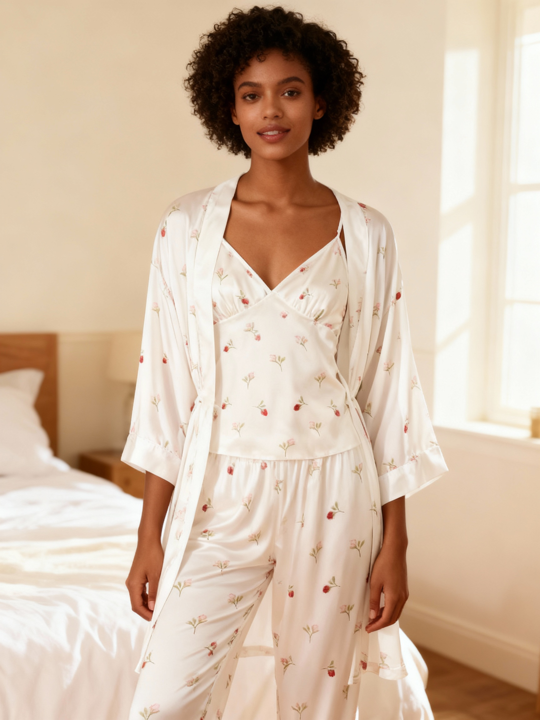 Chic 3-Piece Satin Nightwear Set Featuring Soft Floral Motifs