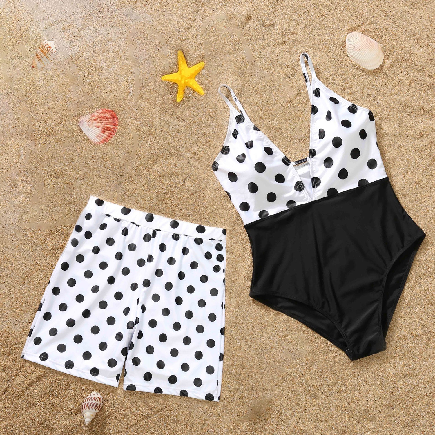 Couple Matching Swimwear Polka Dot Print One Piece Couple Bathing Suit