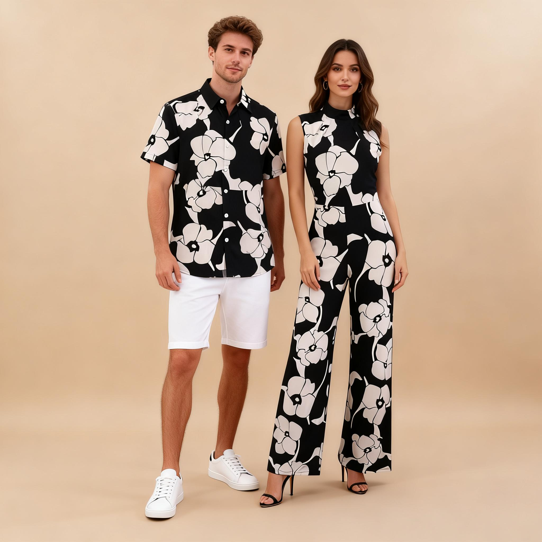 Couples Matching Vacation Outfit – Men’s Shirt & Women’s Jumpsuit