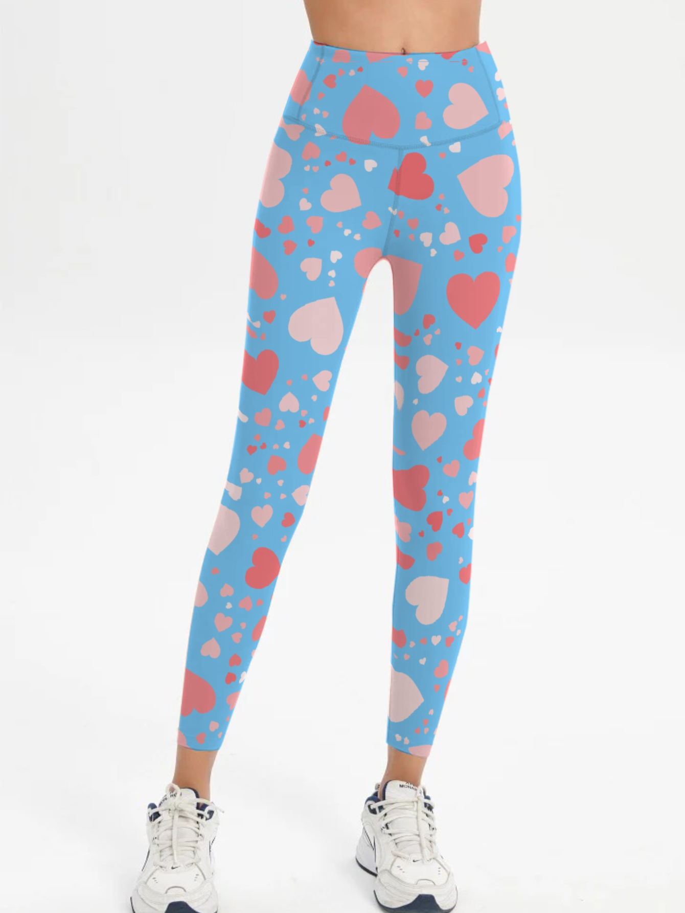 Cozy & Festive & Fashion Women's Blue Leggings with Pink Heart Print