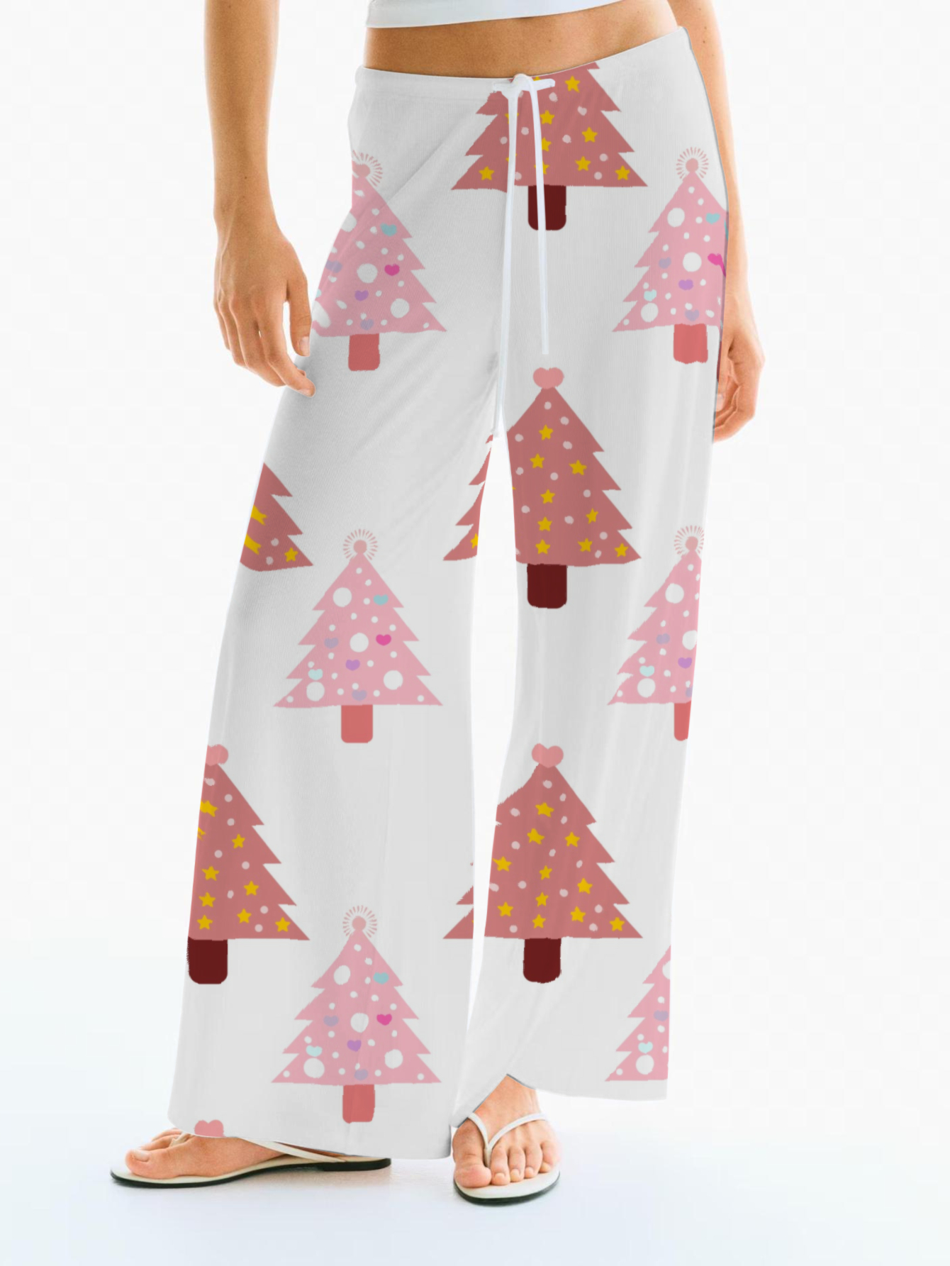 Enchanted Forest Christmas Print Drawstring Wide-Leg Style