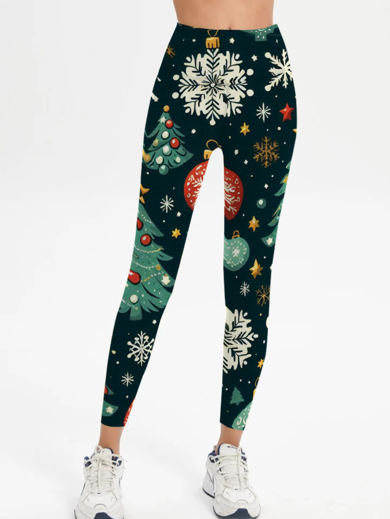 Festival Santa Cartoon Print Mid-Rise Yoga Pants for Women