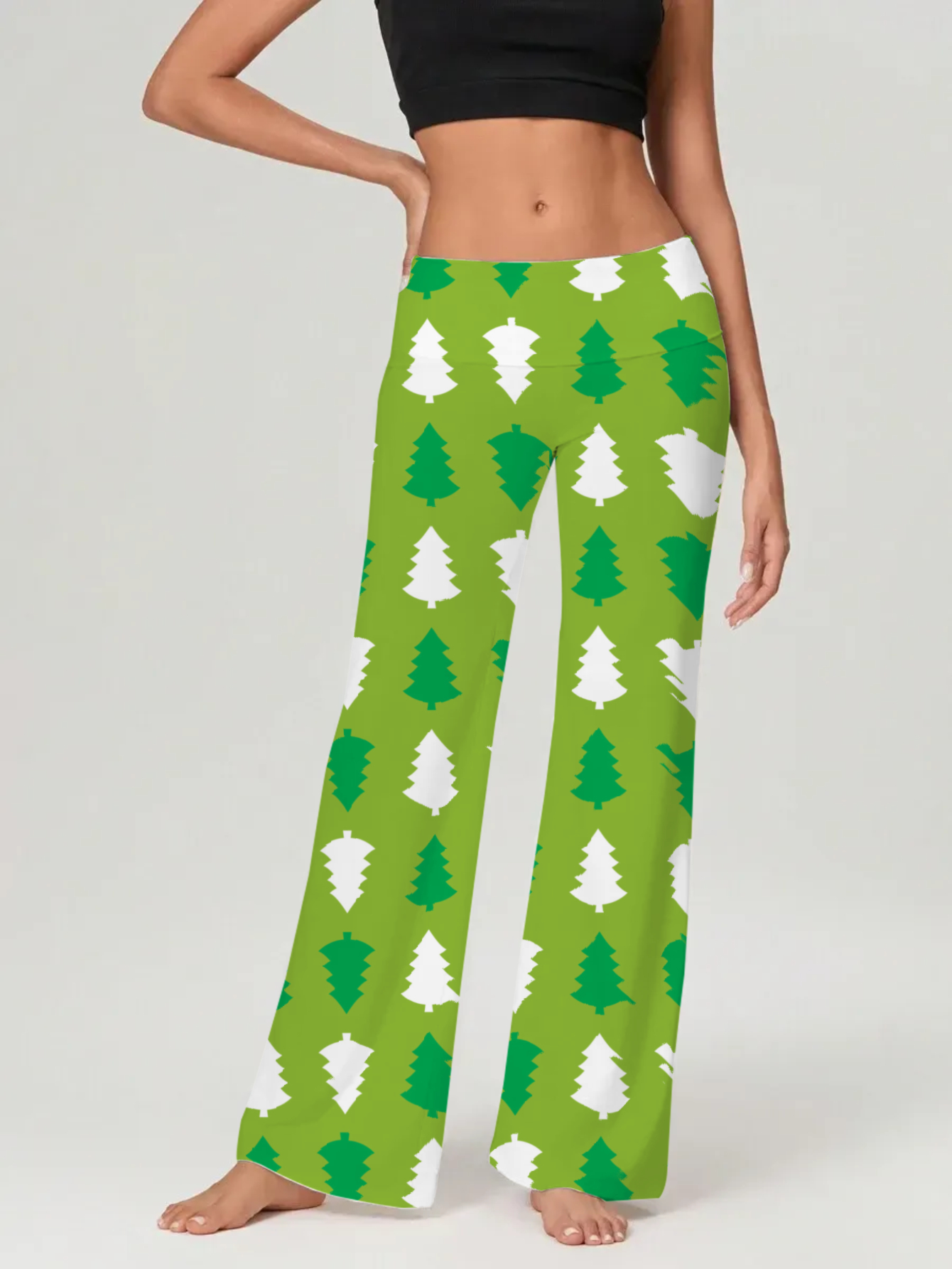 Festive Green Christmas Tree Leggings for Women - Holiday Season Must-Have
