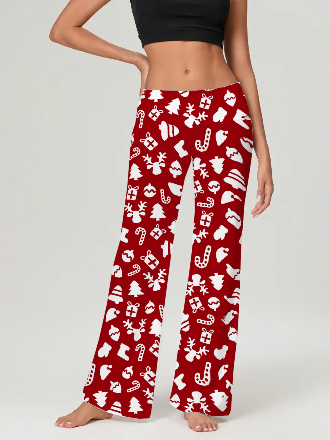 Festive Reindeer & Christmas Pattern Flared Leggings