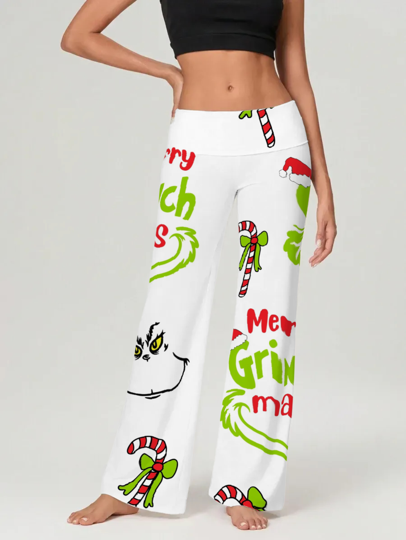 Holiday Grinch Print Yoga Bell Bottom Flare Leggings