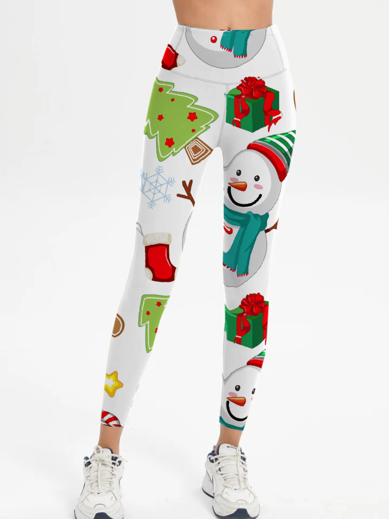 Leggings for Women with Christmas Snowman Cartoon Print - Mid Waisted Buttery Soft Casual Pants