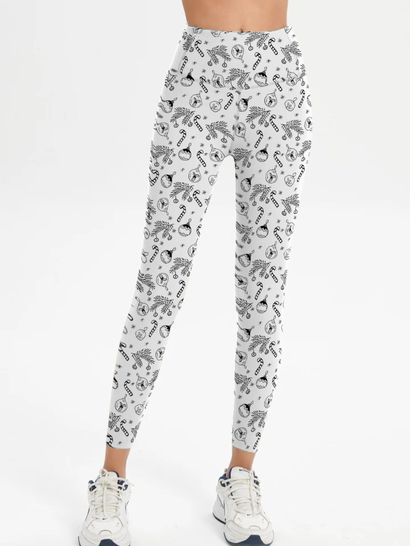 Leggings for Women with Classic Xmas Element Print - Mid Waisted Buttery Soft Casual Pants