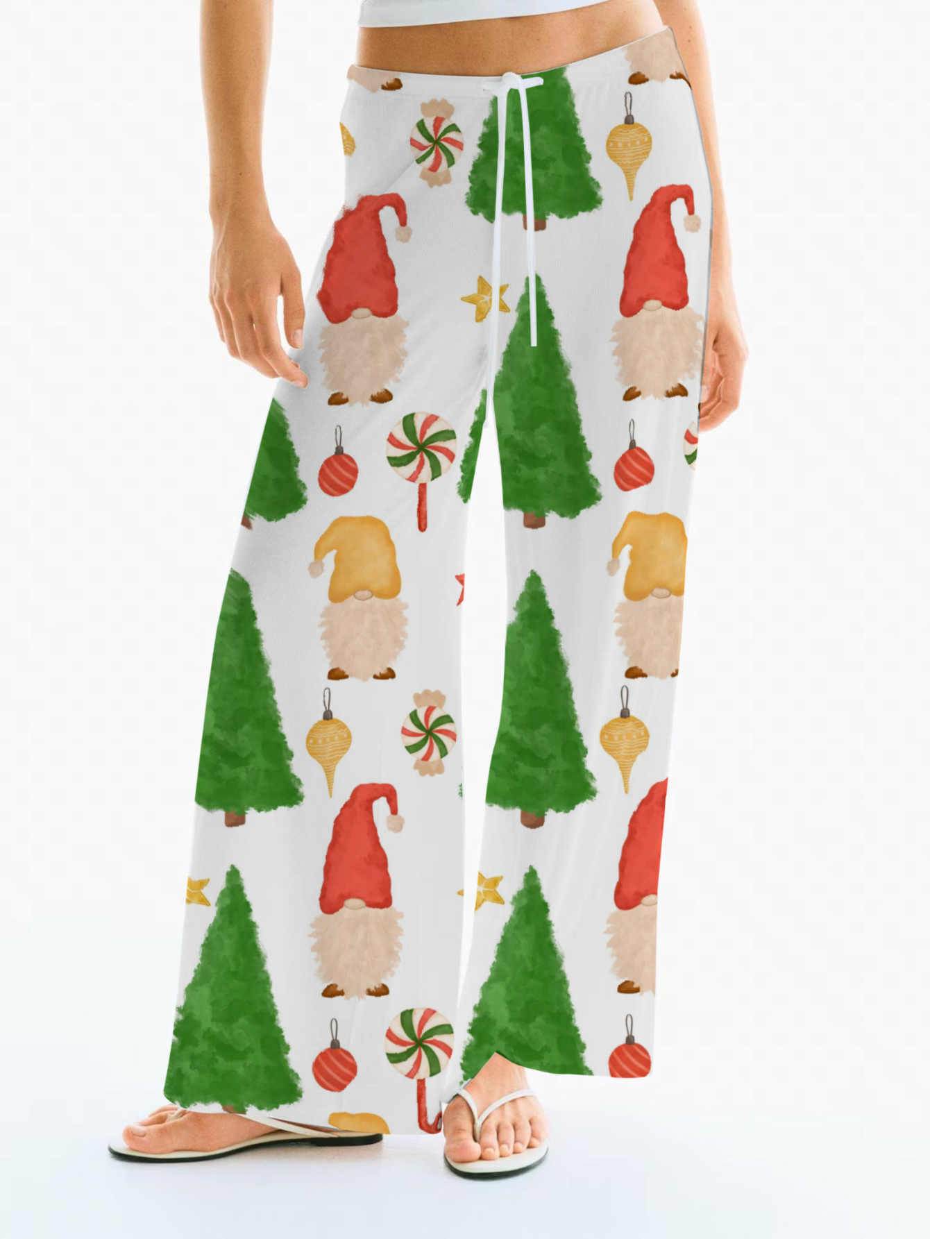Nordic Christmas Tree Pattern Wide-Leg Holiday Pants