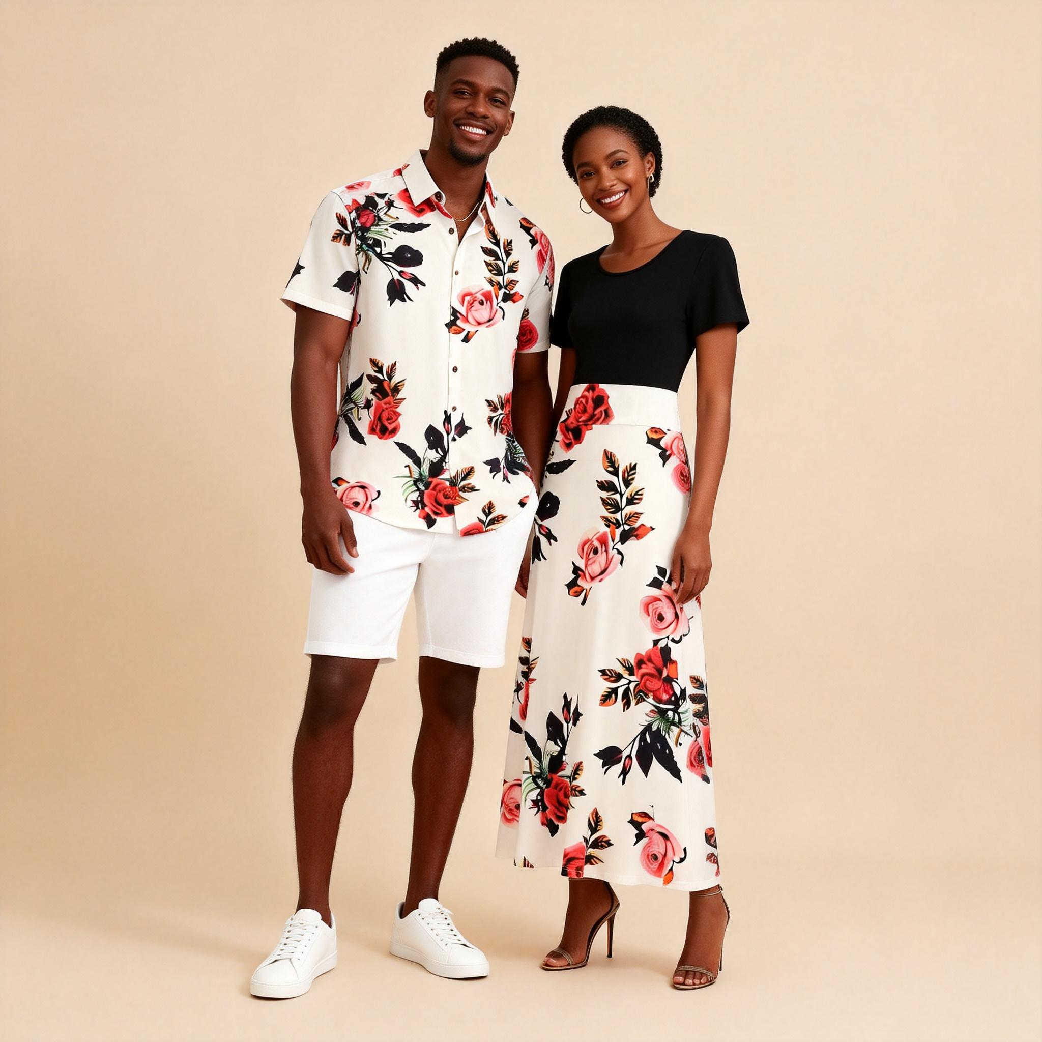 Printed Couples Outfit – Men’s Short Sleeve Shirt & Maxi Dress