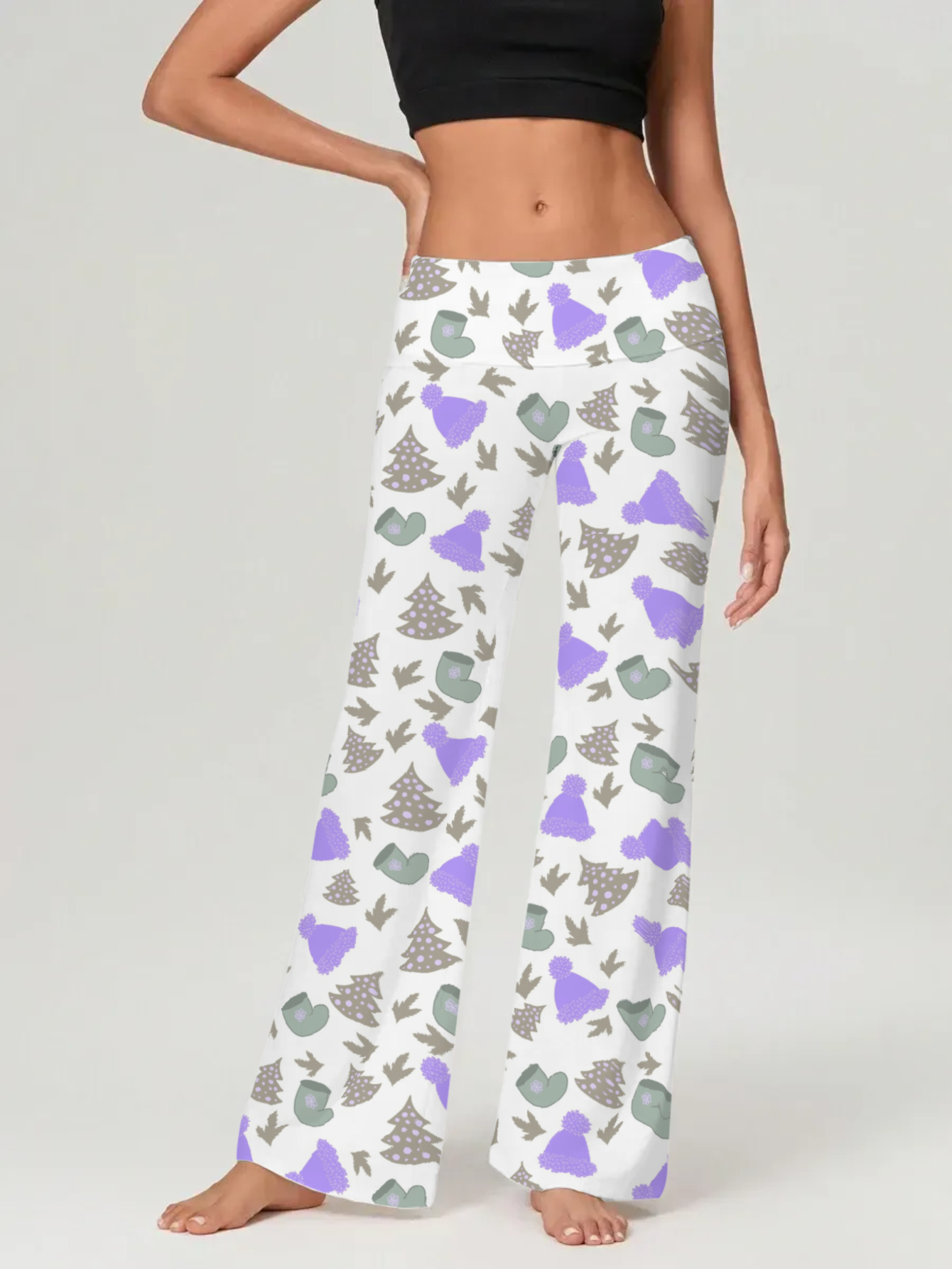 Santa's Hat and Tree Print Flare Leggings