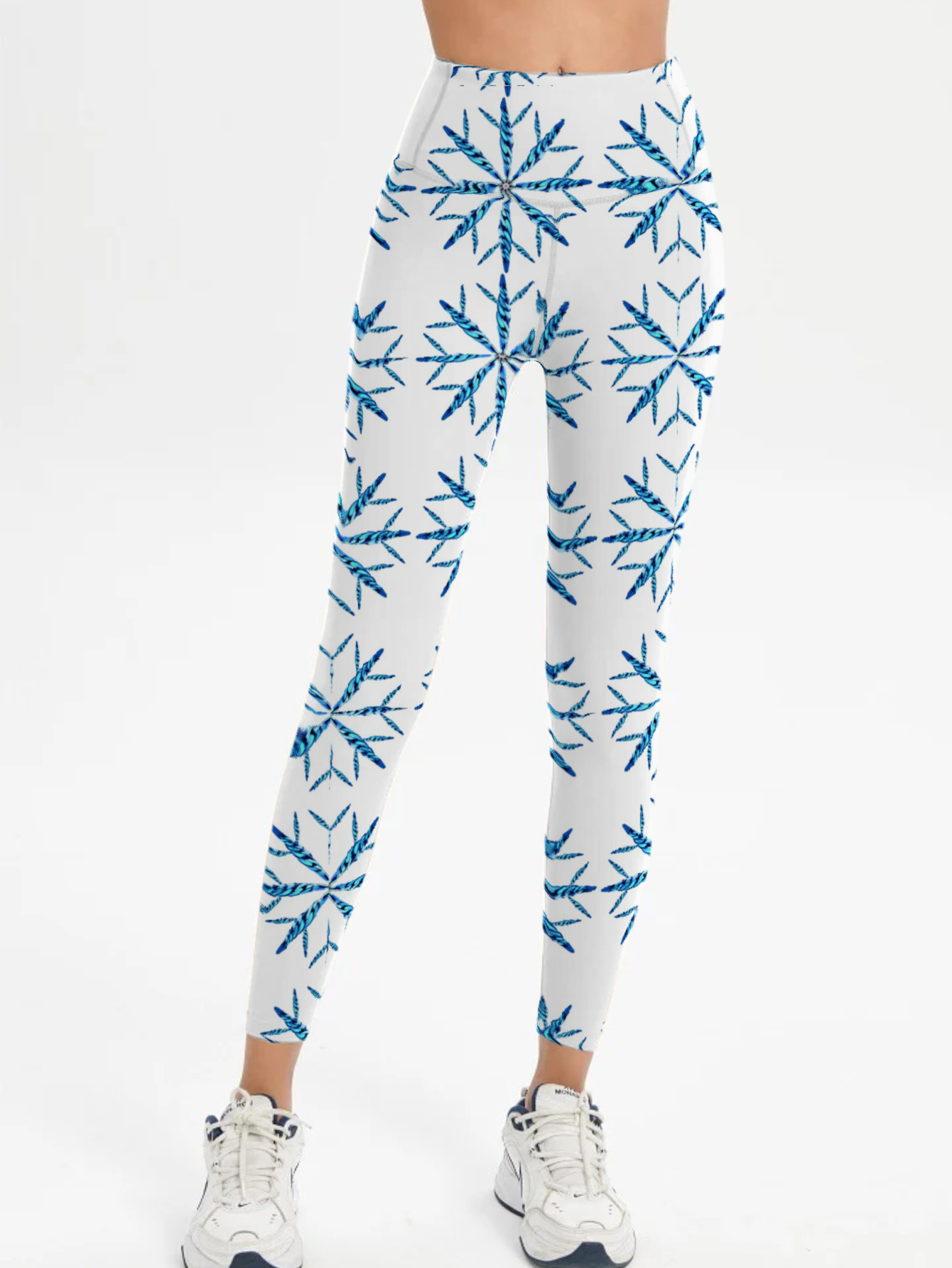 Snowflake Print Yoga Pants - Mid-Rise Tummy Control, Functional Pockets
