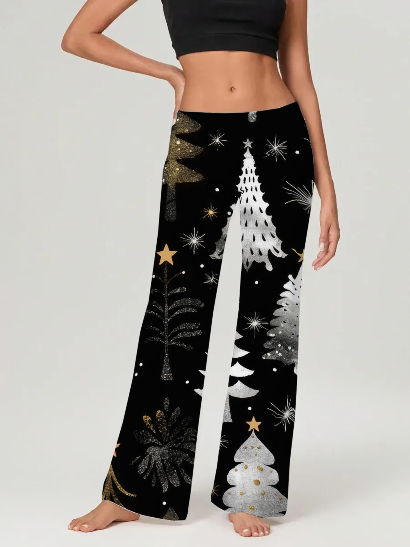 Sparkly Christmas Tree Print Leggings - Holiday Party Tights