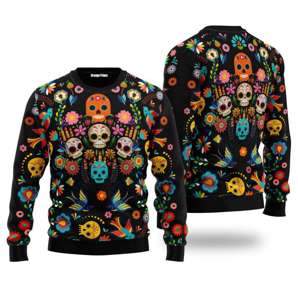 Spooky & Festive Sugar Skull Ugly Christmas Sweater for Men & Women