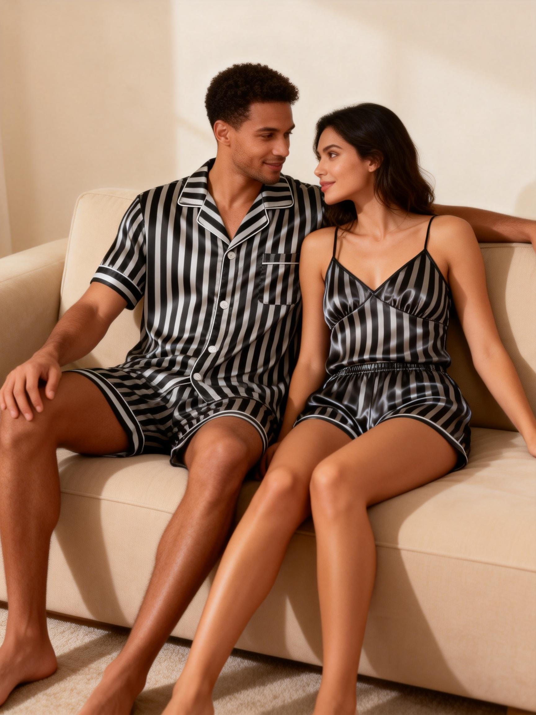 Striped Printed Silky Satin Pajamas for Couples – Chic & Comfortable
