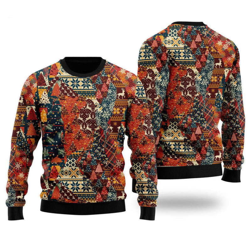 Stylish Xmas Pathwork Ugly Christmas Sweater for Men & Women