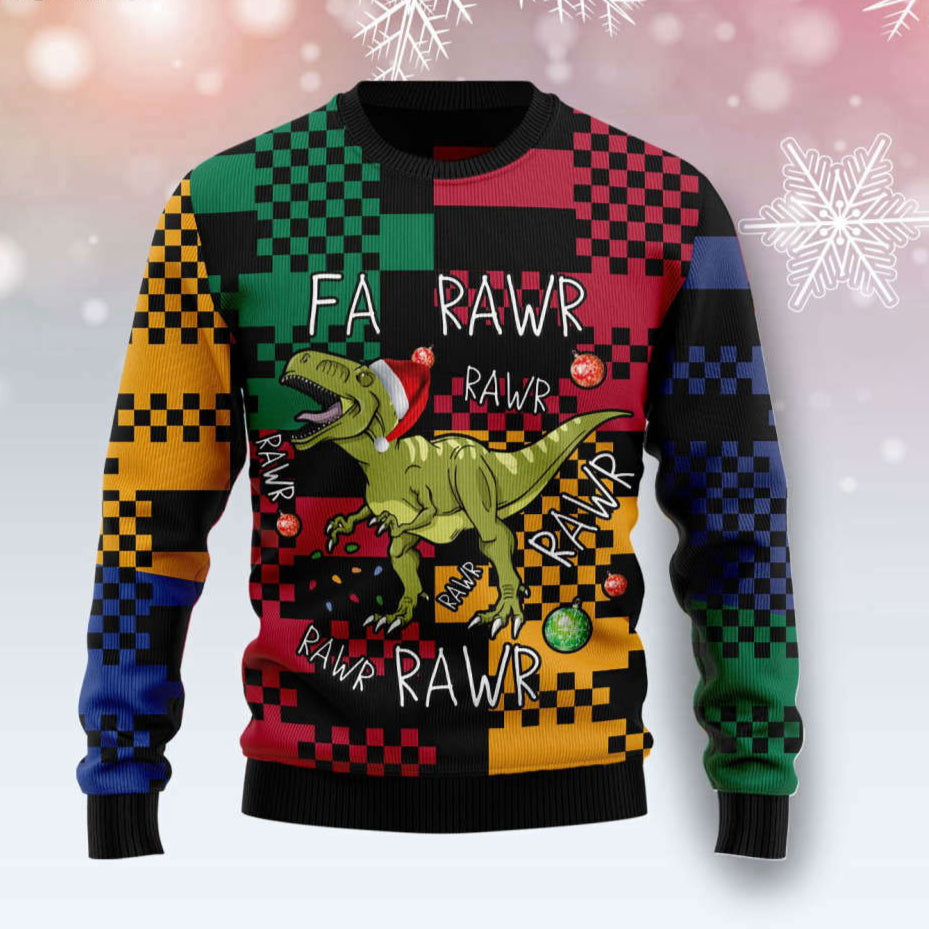 Ugly Christmas Sweater for Men & Women T Rex Rawr Rawr Rawr