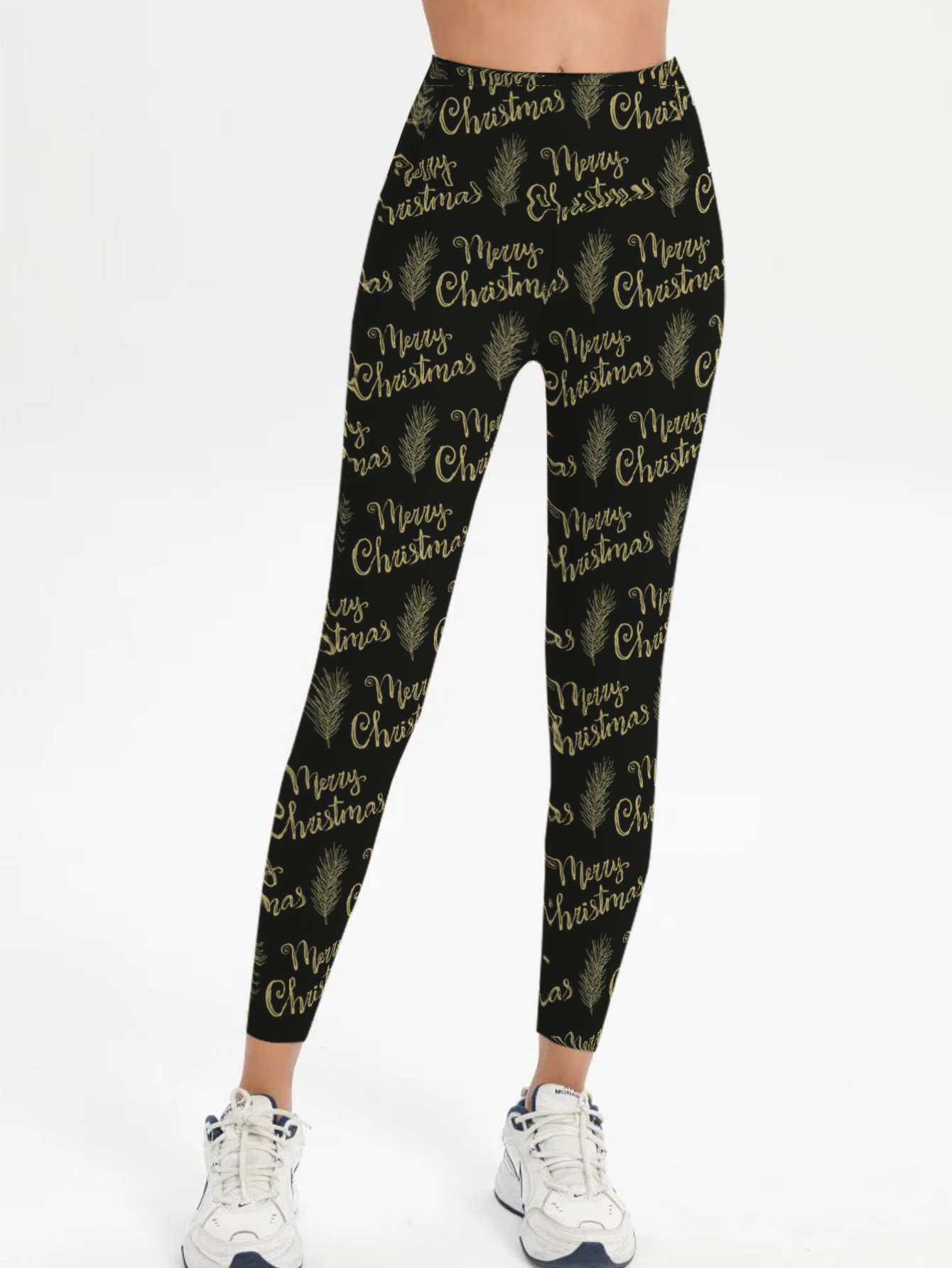 Unique Christmas Slogan Print Women's Black Leggings - Cozy & Festive