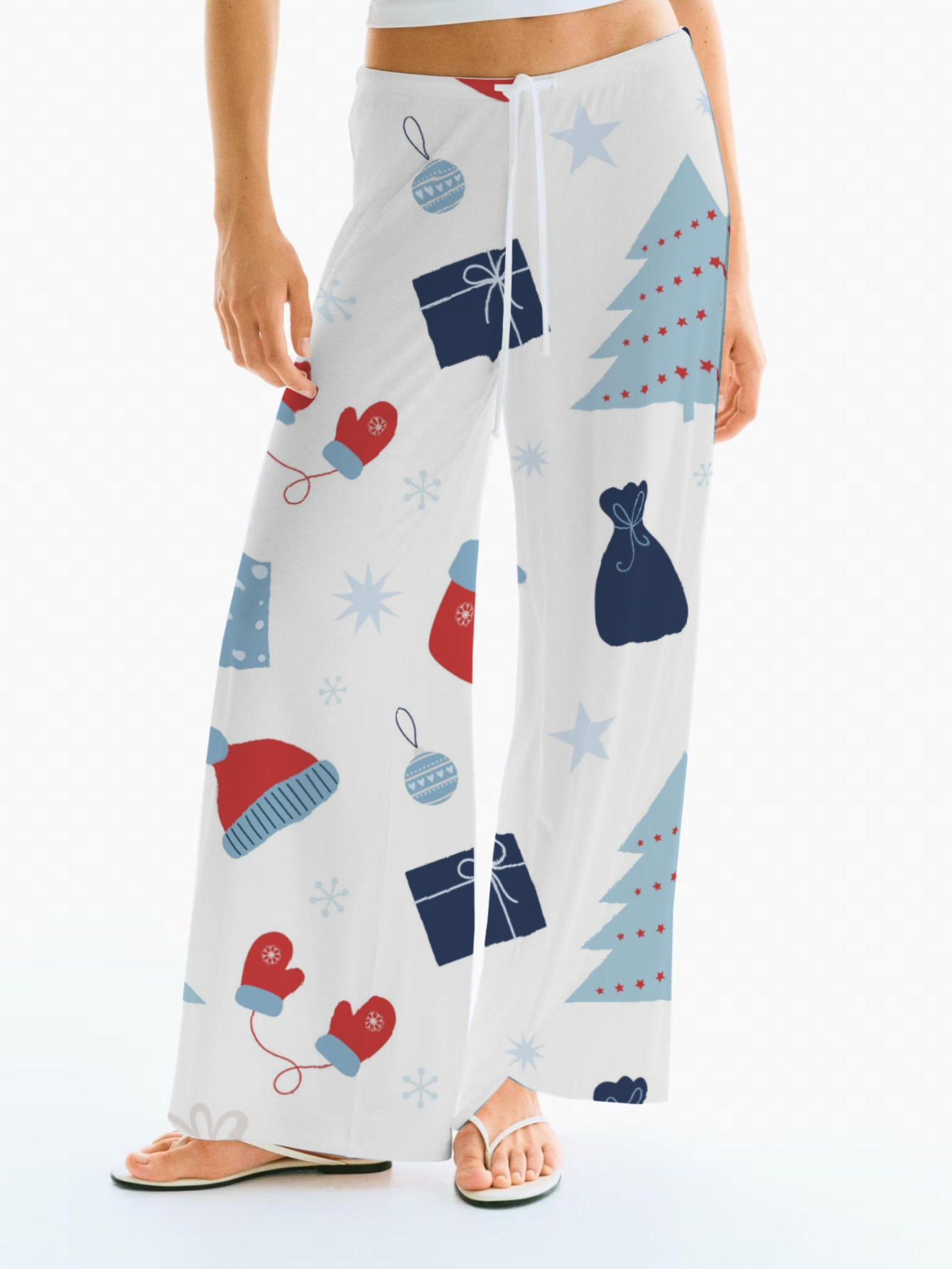 Whimsical Tree Print Drawstring Pants - Holiday Cheer