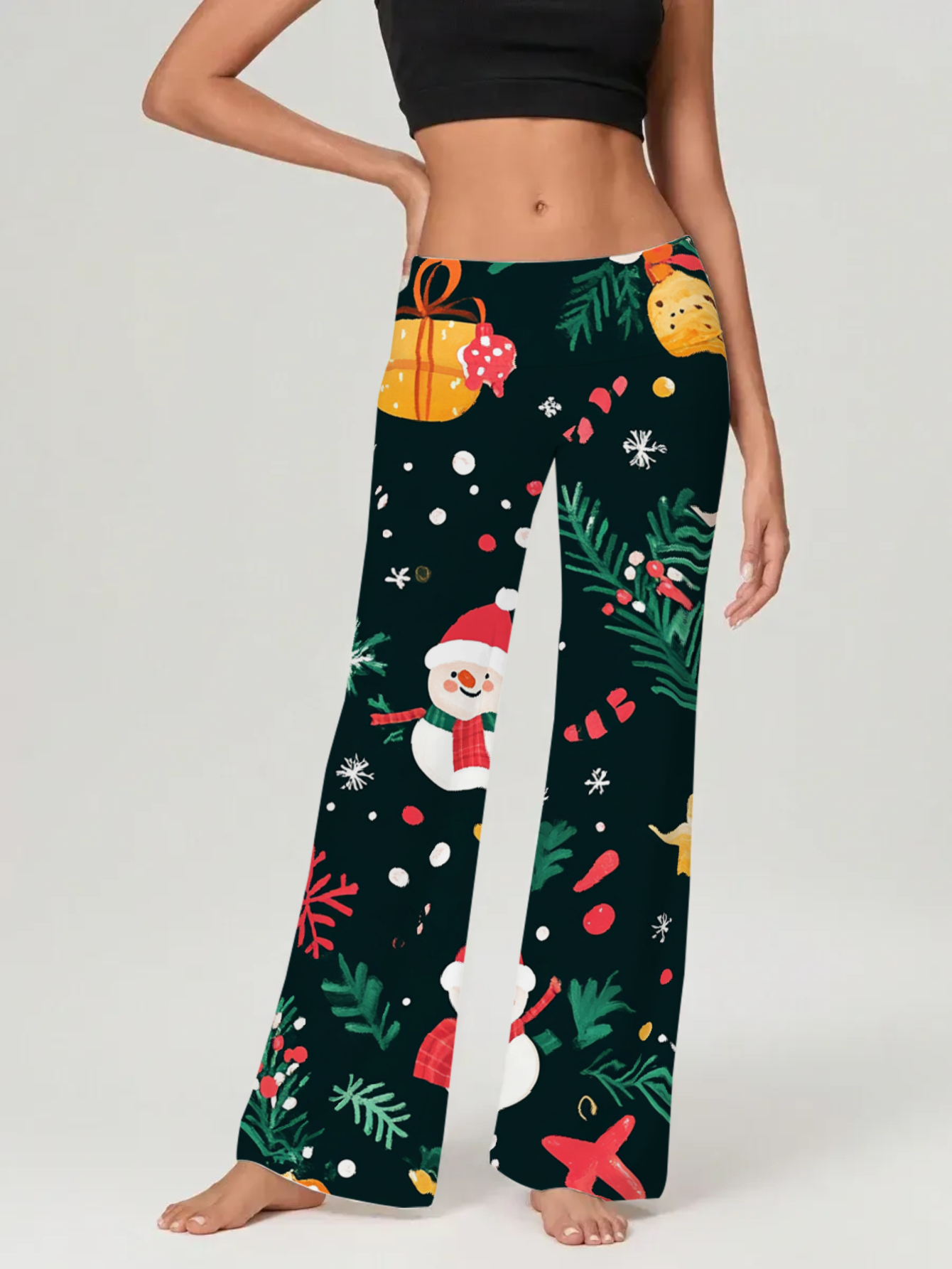 Winter Snowman & Snowflake Pattern Flared Leggings