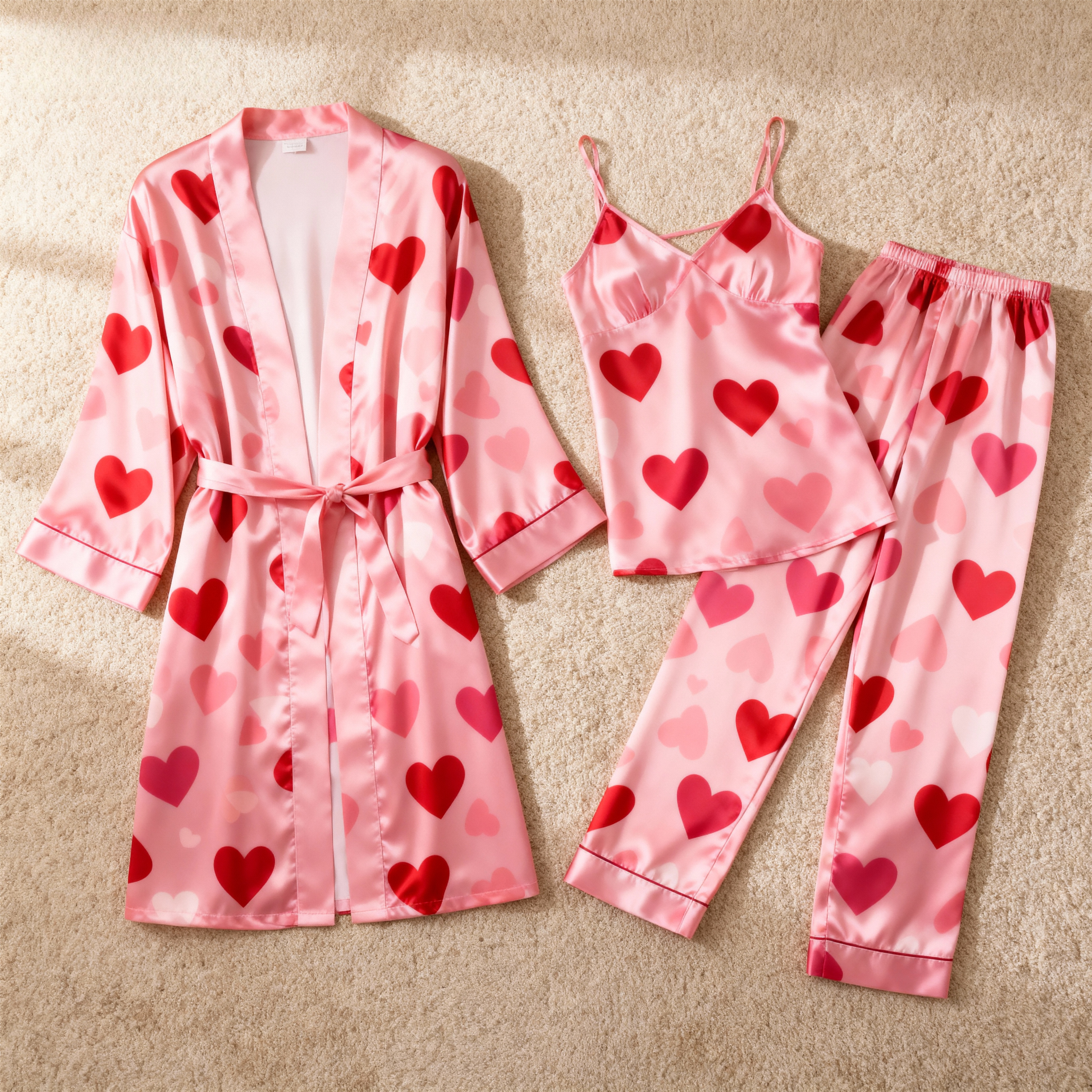 Women's 3-Piece Heart Print Pajamas with Long Robe