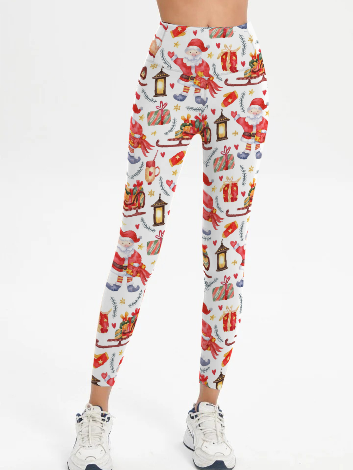 Women's Legging with Mid-Rise, Functional Pockets - Santa Holiday Print