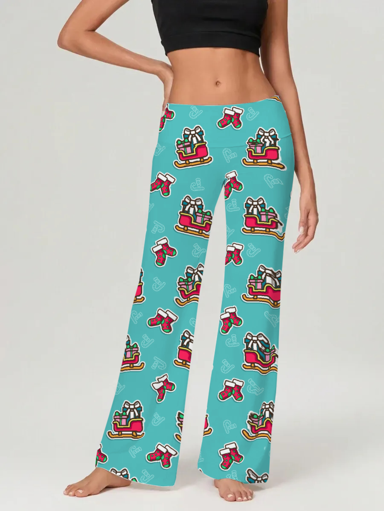 Women's Snowflake and Gift Sled Print Flared Leggings