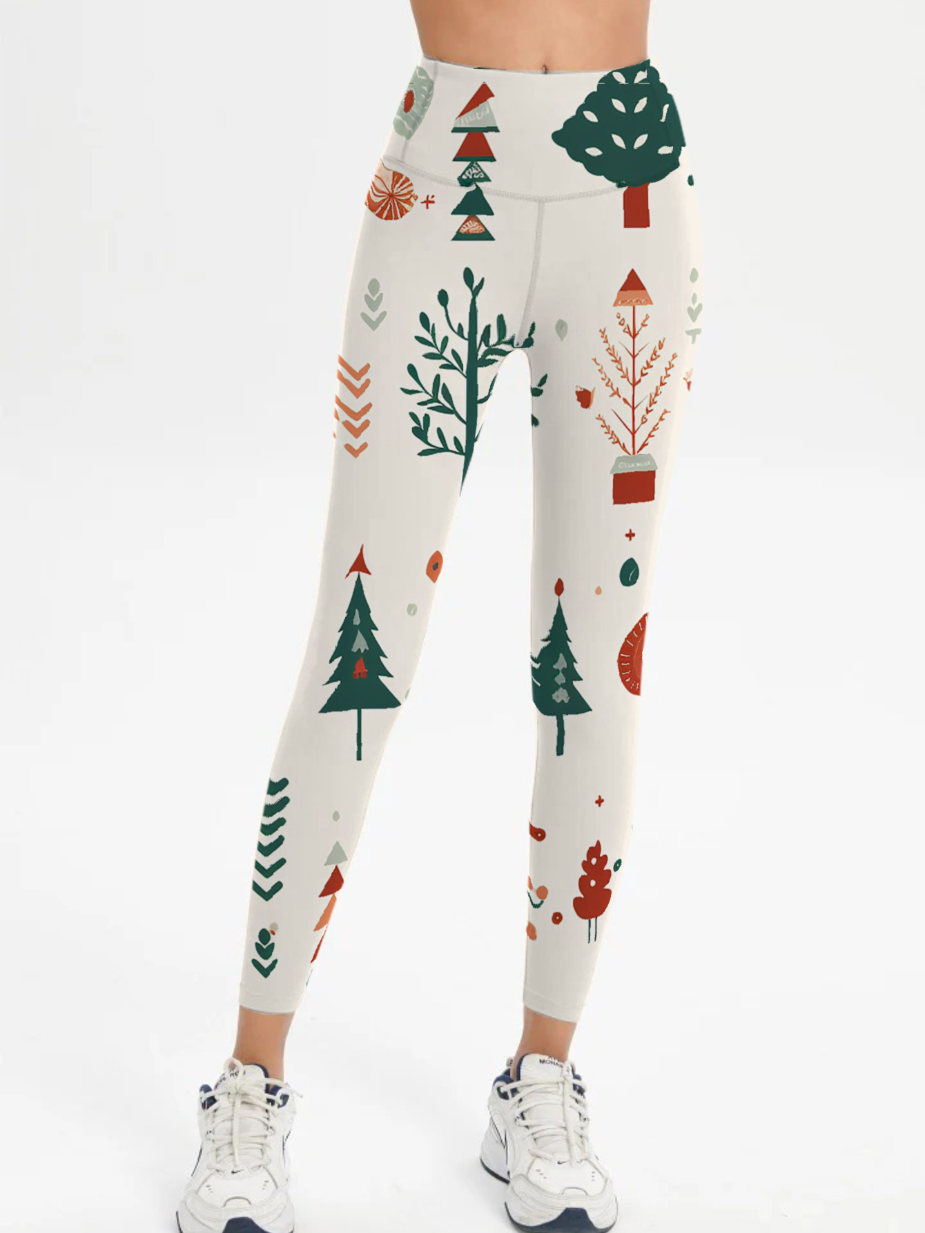 Women's Soft Christmas Tree Artistic Pattern Printed Fashion Leggings - Side Pockets