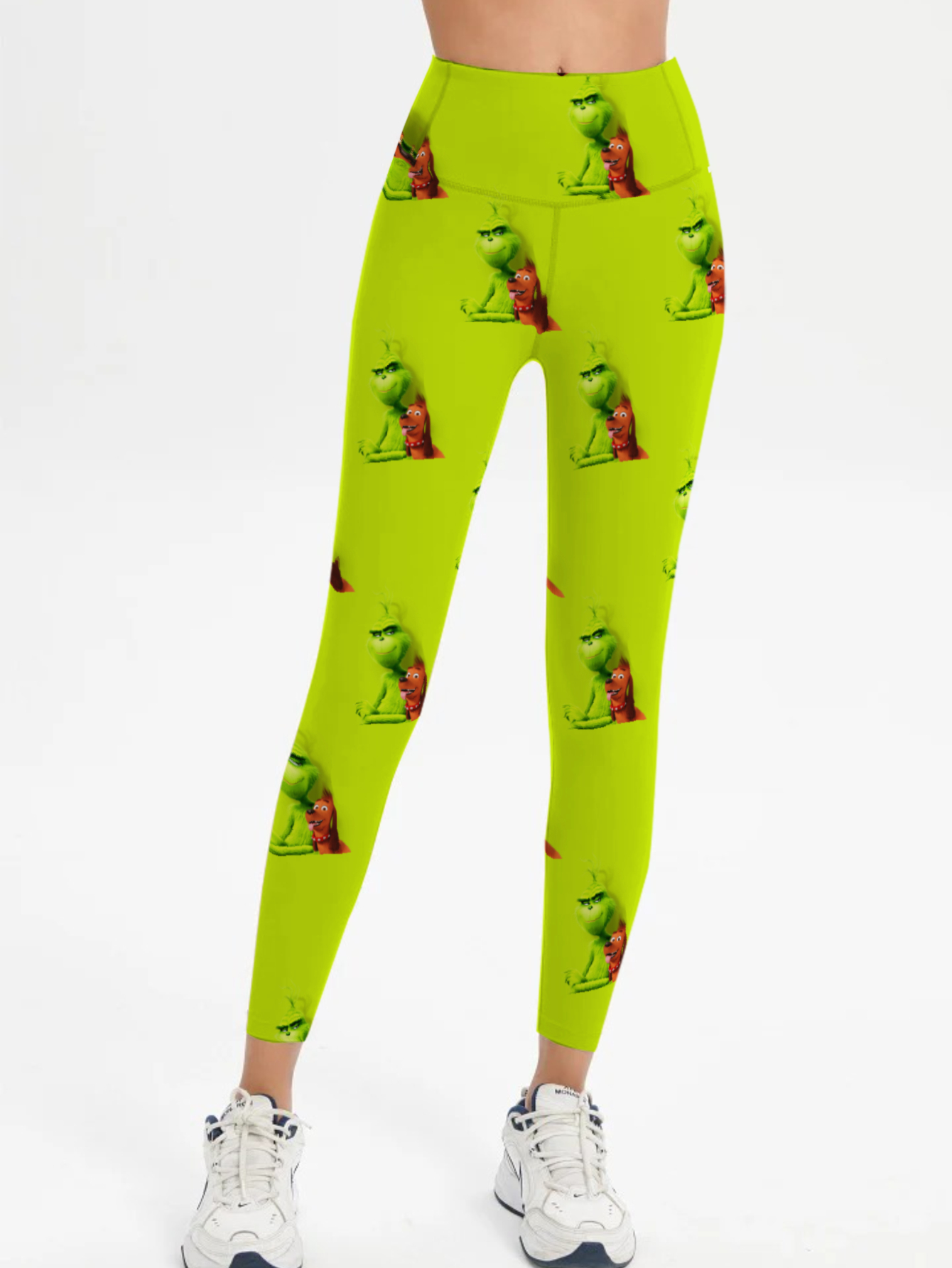Xmas Grinch Print and Grass Green Mid-Rise Yoga Pants for Women