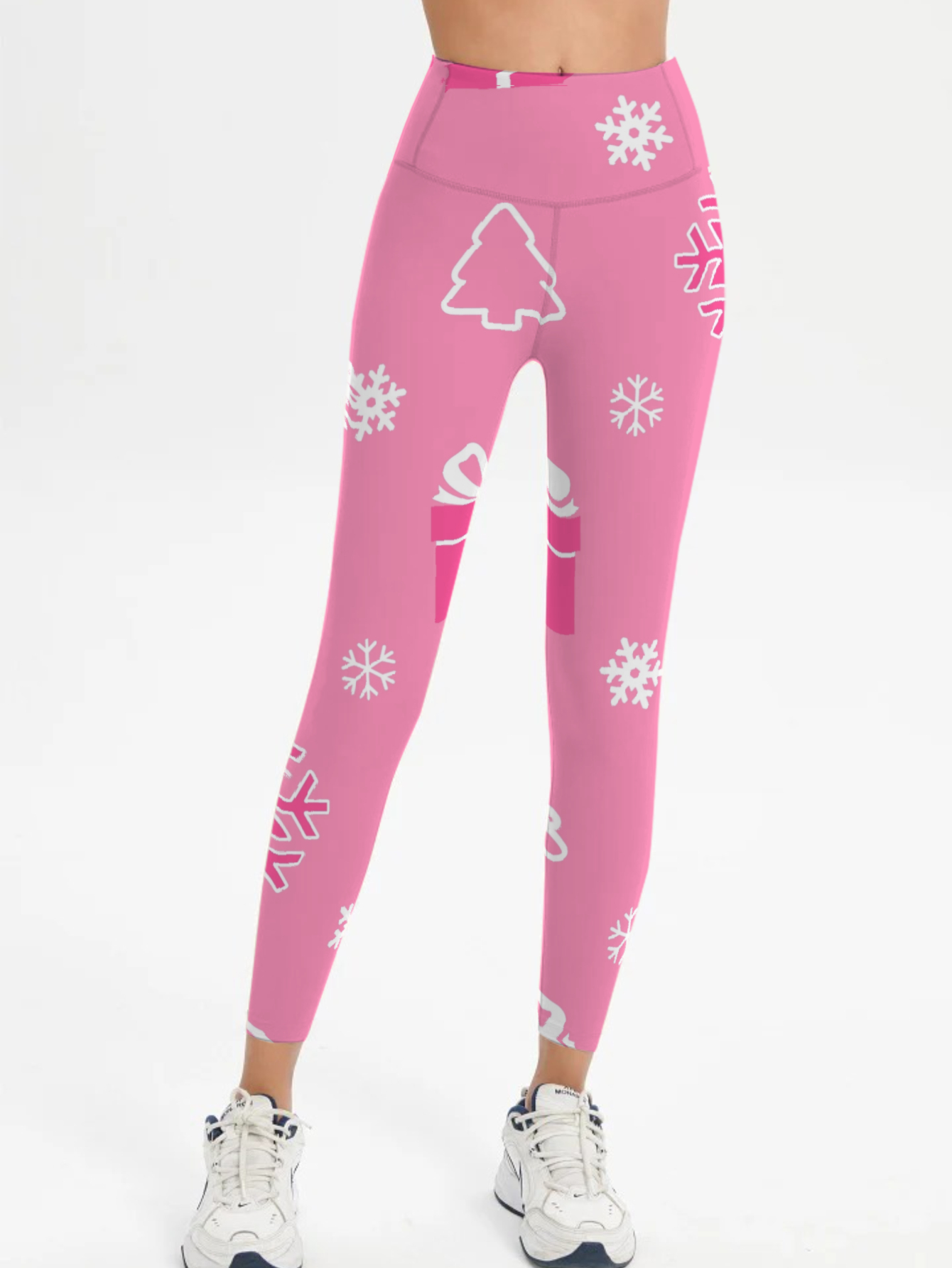 Xmas Pattern Print Women's Pink Leggings - Cozy & Festive & Fashion